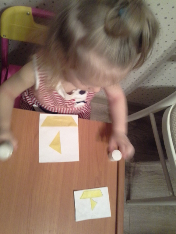 И вот такую игру предложила. Делала сама,объясняла принцип. Ульяна наблюдала