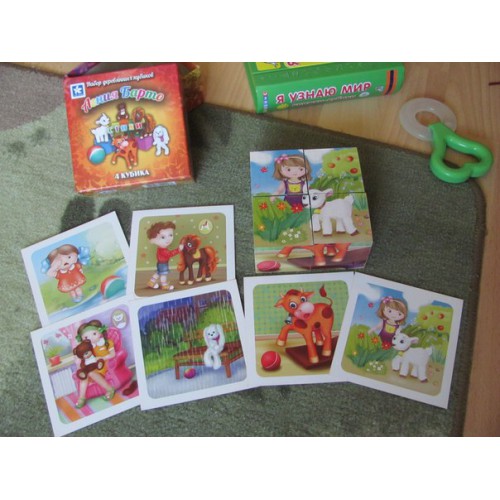 ДД.. Кубики деревянные мне нравятся. Глянцевые картонные иллюстрации приклеены к кубикам очень крепко и качественно.