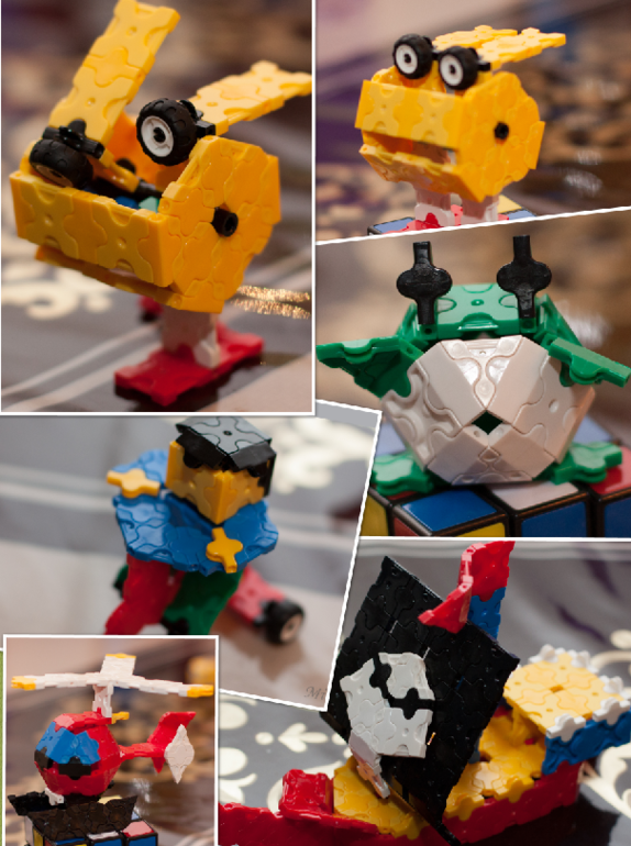 Трехмерные модели - это наша гарантия отличных отметок по геометрии и черчению) Так как надо представлять в трехмерном пространстве модель, какие детали находятся сбоку, сзади, и как слепить обе части вместе. Для маленьких детей есть схемы сборки плоских моделей, тут все легко и просто, основная деталь вставляется в соединительную и защелкивается. Основных деталей два вида - квадрат и треугольник. Есть еще колеса - большие и маленькие и штыри для колес. Соединительные детали нескольких видов - двухсторонние для плоских фигур, трехсторонние для трехмерных, есть еще детали согнутые под углом, используются для придания формы шара