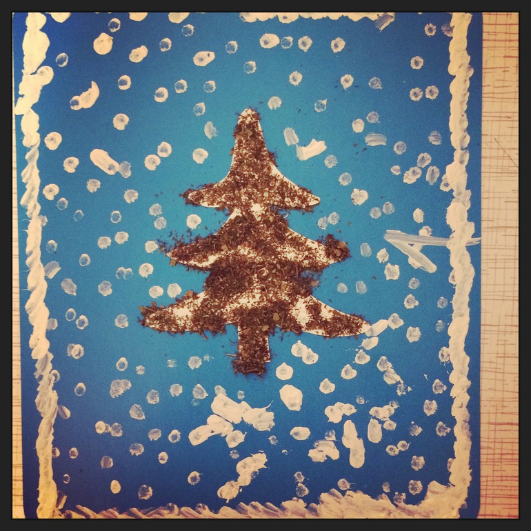 Даша сделала ее практически сама: елочку и снежинки, я только немного направляла руку мастера.