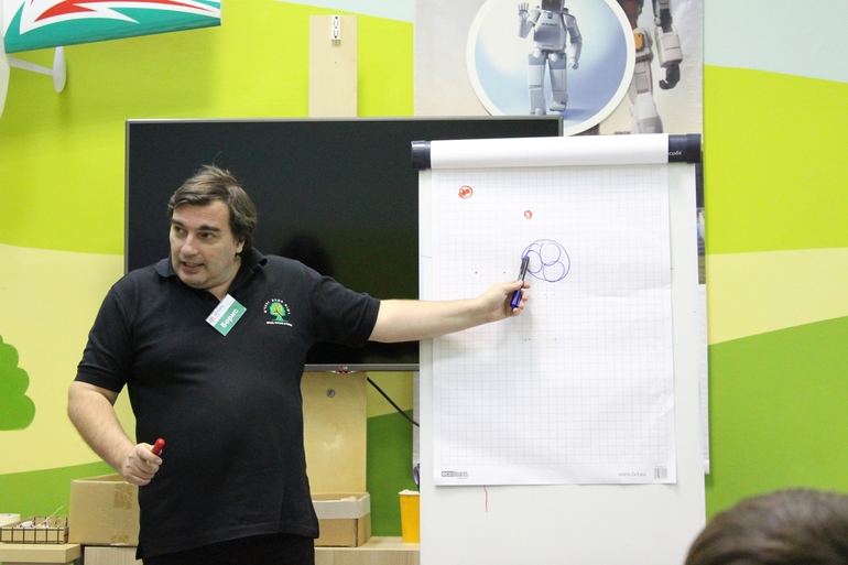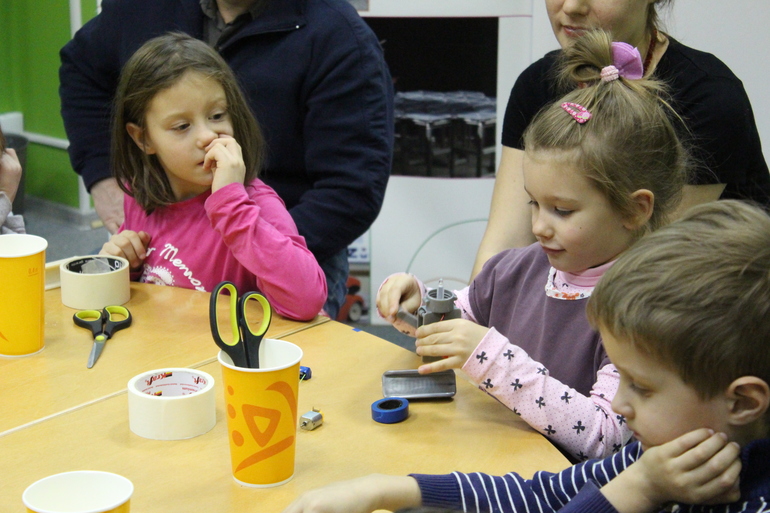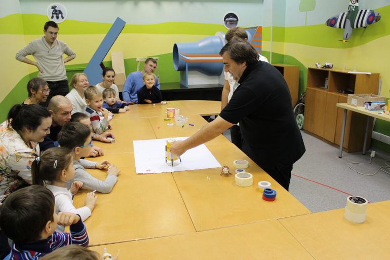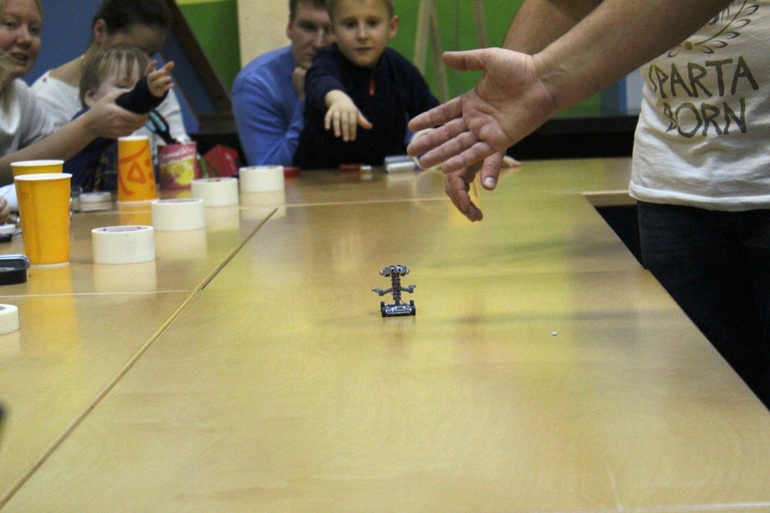 И наконец - смастерили своего собственного робота на основе батарейки, скотча, моторчика и щеточки (а также интересной штучки под названием эксцентрик).