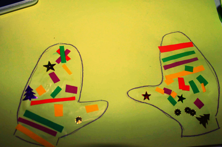 А это чтоб не замерзнуть. Нам актуально,на улице минус и ветер очень холодный.)) Обвели Темины ручки и вот такие замечательная аппликация вышла