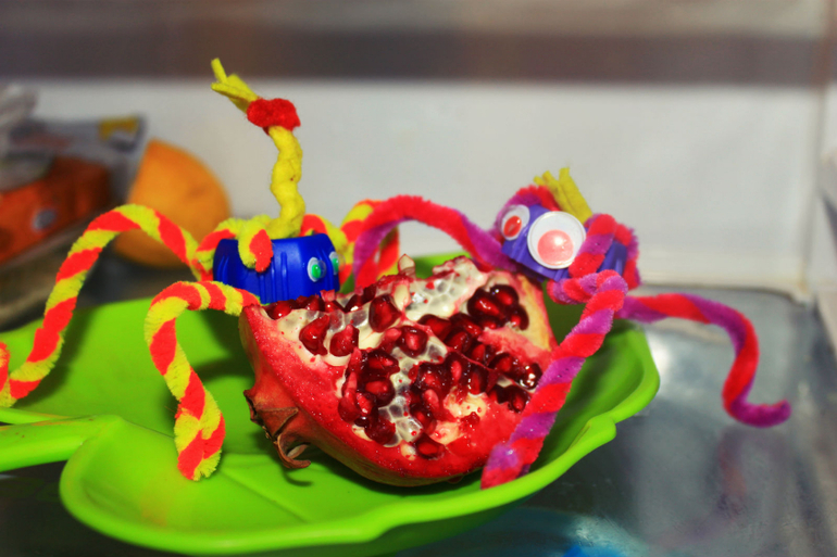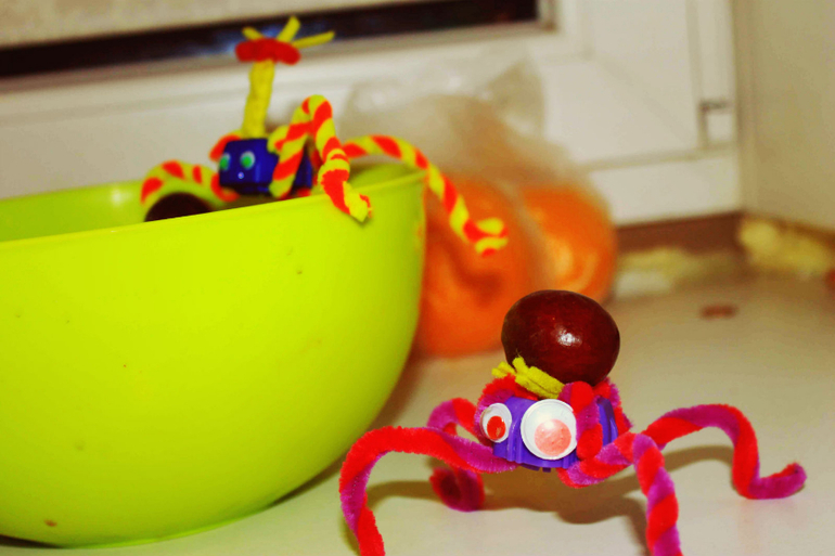 ПыСы: вот так сделанные на скорую руку,во время позднего ужина паучки разнообразили нашу жизнь.Дети с интересом ищут где же паучки спрятались на этот раз,объясняют им правила поведения и угощают едой из своей тарелки.