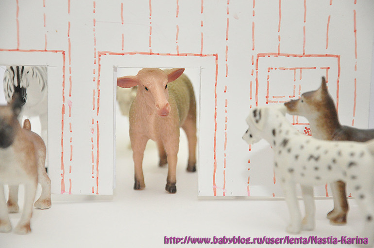 Заселяем в домик животных или куколок. Играем и в ферму и зоопарк. А куколки ходят друг к другу в гости, налаживают добрососедские отношения:)