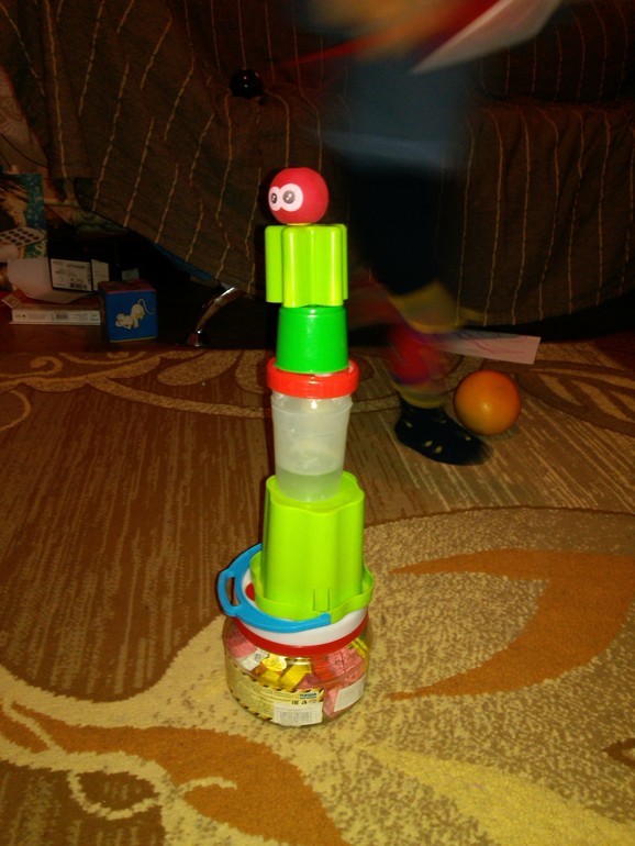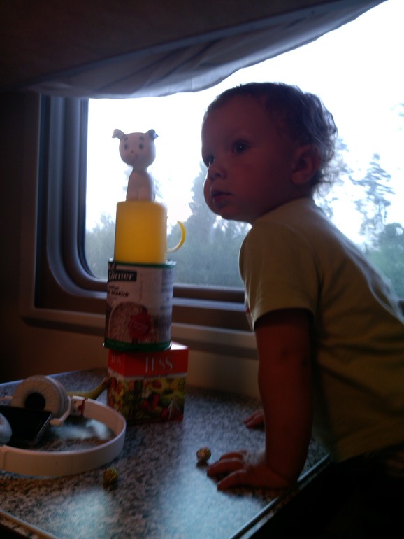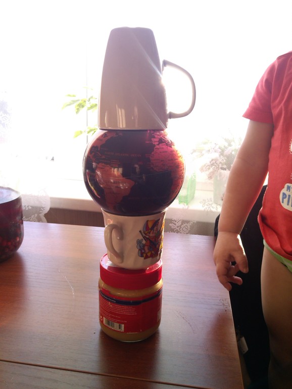 Тягу к построениям башенок я заметила у Егора летом, когда он соорудил в поезде вот такую штуковину: