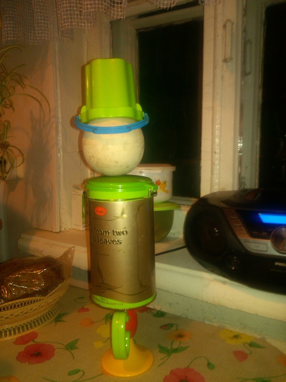 Но, если нашего "снеговика" с нами нет, то Егор всегда найдёт выход из положения. Например, в гостях он увидел такой вот глобус, который вполне заменил постоянную основу: