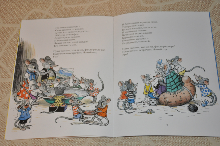 Замечательная тоненькая и очень "уютная" книжка с рисунками Сутеева. Появилась у нас совсем недавно и сразу пришлась Артурио по душе - читаем ее очень часто. Особенно ему нравится припевать вместе со мной повторяющийся отрывок, который волшебным образом превращает стихотворение в праздничную песенку: "Прыг да скок, хоп-ля-ля, фалле-ралле-ра!..." Прямо сразу погружаешься в атмосферу праздника!))