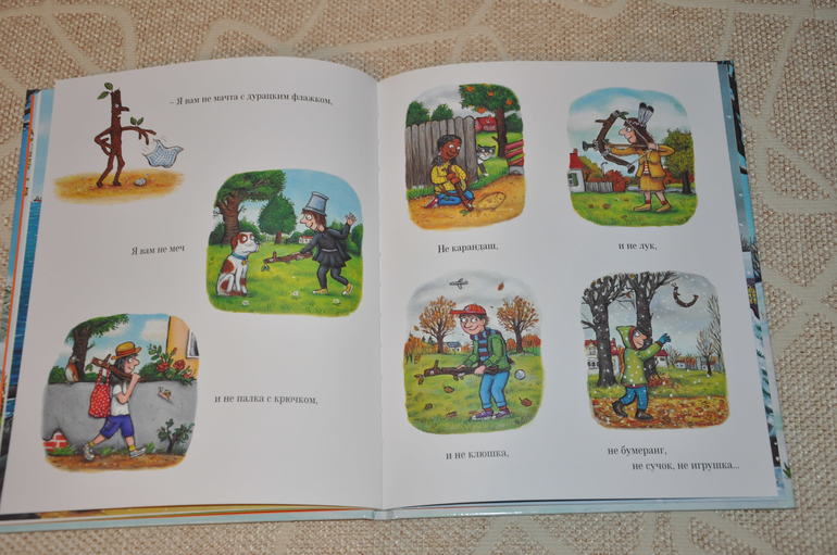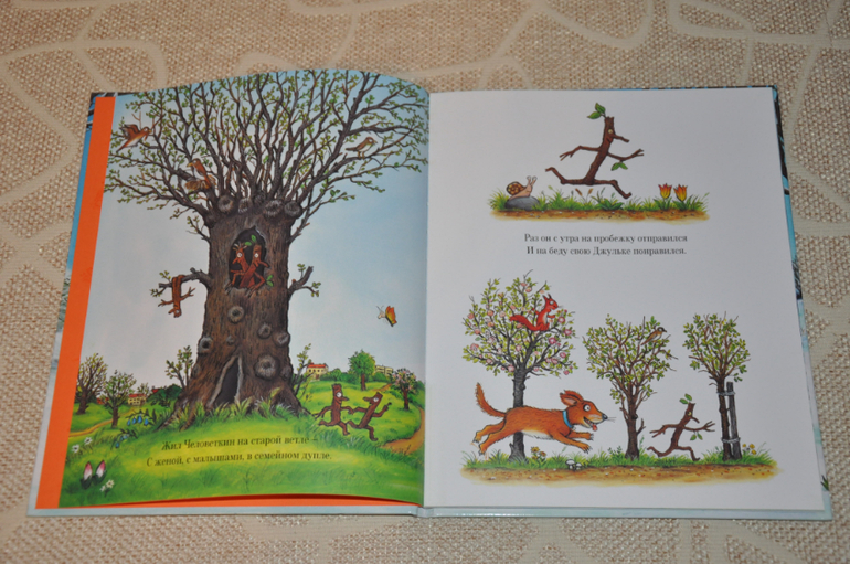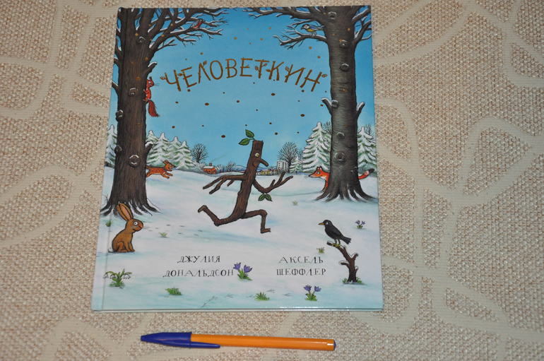 Эта история о злоключениях Человеткина - не просто ветки, а "разумного, живого" существа, который, к тому же, "супруг и отец"!)) Про отличный перевод Марины Бородицкой я тоже уже сто раз писала, подо всем подписываюсь еще раз - Джулия Дональдсон и ее герои теперь немыслимы не только без рисунков Акселя Шеффлера, но и без перевода Бородицкой.