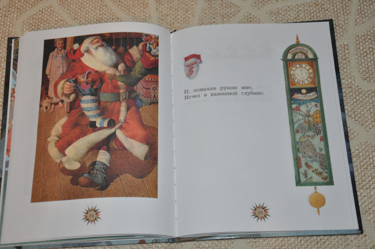 Иллюстрации замечательные, с ними прямо погружаешься в атмосферу рождественского сочельника...А какой живой и при этом разный на них Санта Клаус!