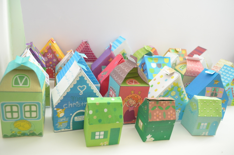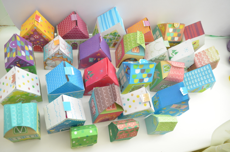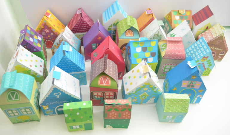 Идею с домиками увидела здесь. Скачала разных домиков, правда принтер немного барахлил, но ничего. Очень понравились домики с сайта