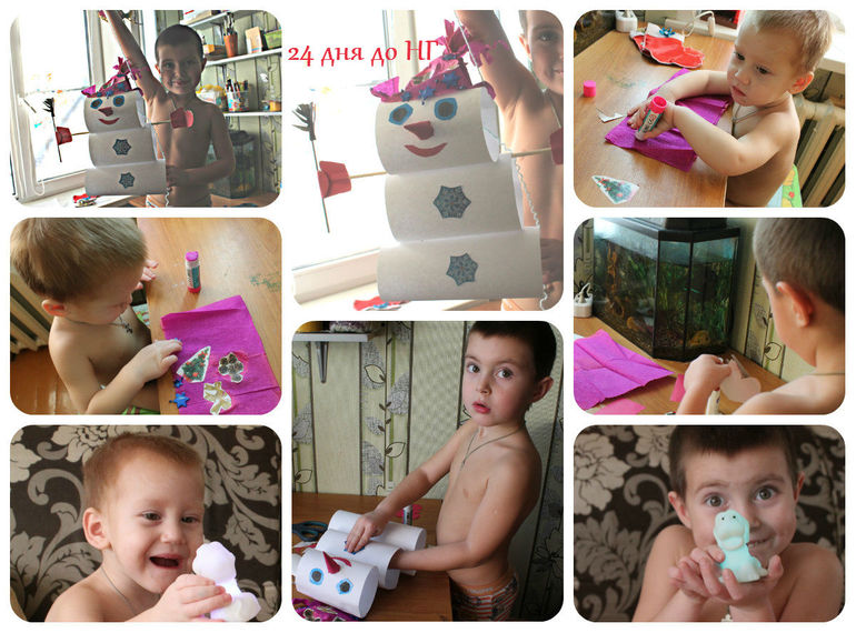 Мистер Умелец или Очумелые ручки (поделки, аппликации, интересные находки, идеи и задумки)Каждый год 1 декабря к нам приходят снеговички, помогают нам подготовиться к НГ. К слову сказать Вадим начал ждать снеговиков с октября месяца))))) Глеб встретился с ними впервые но тоже с энтузиазмом пригялся за работу)))) Каждую ночь снеговики оставляют записку с заданием в кармашке авент- календаря. Первое задание самое ответственное- письмо дедушке Морозу)))) Со 2 декабря наша детская превращается в мастерскую, а мама в бабу ягу с фотоаппаратом. Я просыпаюсь от криков "МАМА СНЕГОВИЧКИ ЗАДАНИЕ ПРИНЕСЛИ !ПРОЧИТАЙ! ДАВАЙ СДЕЛАЕМ! МАМА ВСТАВАЙ ТАМ ЗАДАНИЕ!!!!" встаю, на скорую руку готовлю им завтрак, беру фотик и сажусь за творчество)))))) потому привести себя в порядок удается часиков в 12)))))) но все это конечно же мелочи, главное, что дети верят в сказку))))