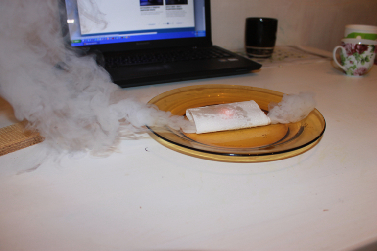 Так что если кто надумает попробовать , хочу предупредить, что дыма много, что лучше делать на улице и подождать минутку-две.