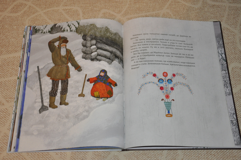 Классическую сказку Бажова пересказывать, думаю, нет необходимости))) Покажем только великолепные, объемные и живые, и тоже очень самобытные, иллюстрации.
