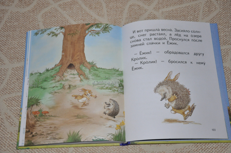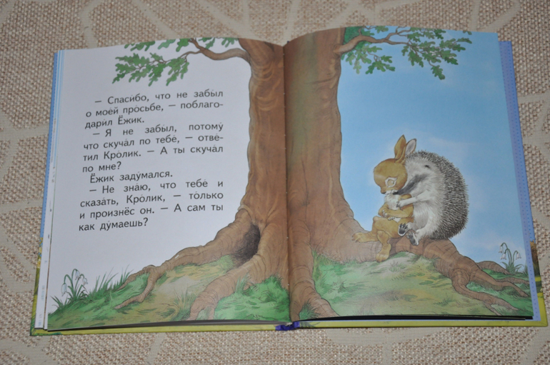 В книжке собрано несколько историй про двух закадычных друзей - Ёжика и Кролика. Дружба их очень трогательная и искренняя, наверное, и поэтому все 4 истории мы прочли взахлеб и требовали повторения банкета. Всем советуем - это такой О. Генри для детей))