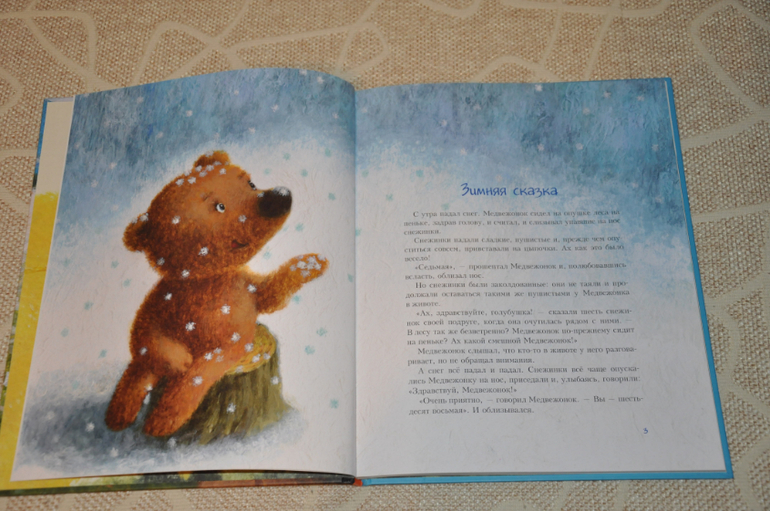 Все рассказы, в том числе и "Зимняя сказка", здесь изложены гораздо подробнее, чем в предыдущей версии, в них больше описаний природы, мыслей и чувств персонажей, в общем, язык, на мой взгляд, для нашего возраста еще пока сложен и многое Артур может не понять.