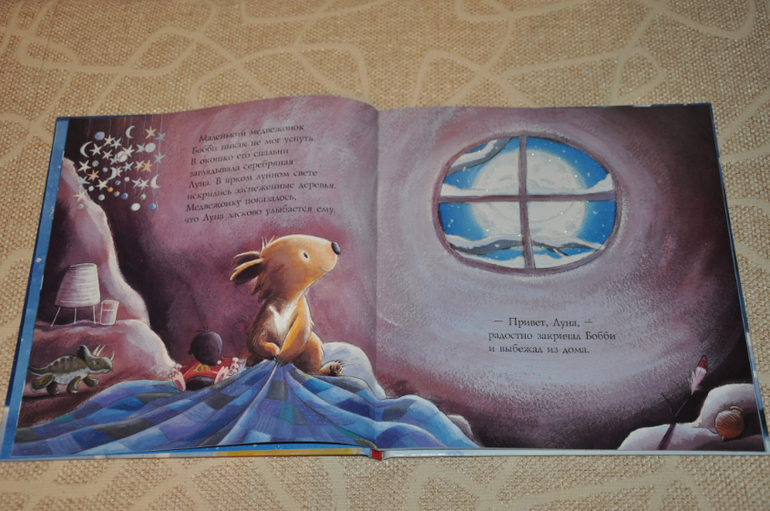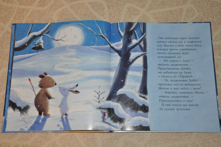 Эту книжку я купила еще когда Артуру не было и года - мы тогда просто подолгу разглядывали искрящиеся картинки и тыкали пальчиком в мишек, заек и луну)))