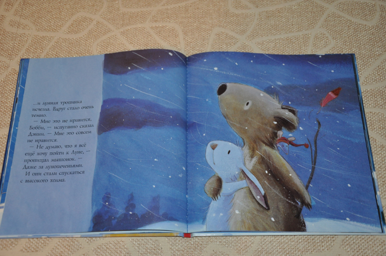 История простая и понятная малышам - про то, как три друга - медвежонок Бобби, зайчонок Дэнни и мышонок Моззи решили пойти в гости к Луне, чтобы попить с ней чай с лунопеченьями и лунопирожками))