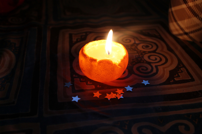 а как ее сделать? растопить свечку, почистить аккуратно манадрин, залить воск в манадрин и дать застыть? фитиль еще вставить?