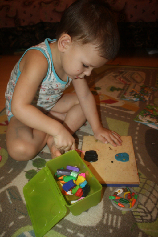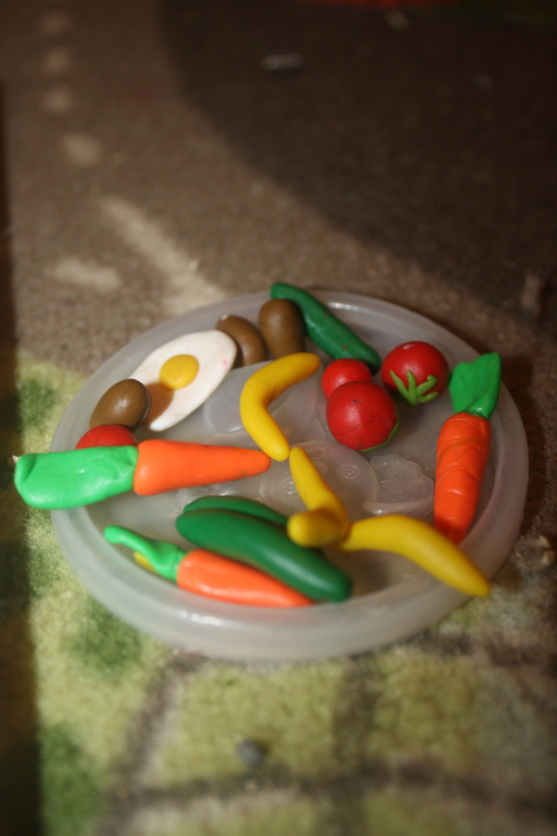 А тут буквально на днях достала я эту коробочку с глиной, детям пластилин выдала и давай лепить. Налепила немного, но этого хватило, чтобы Дима занялся серьезно не рыбной темой. а огородно-овощной )