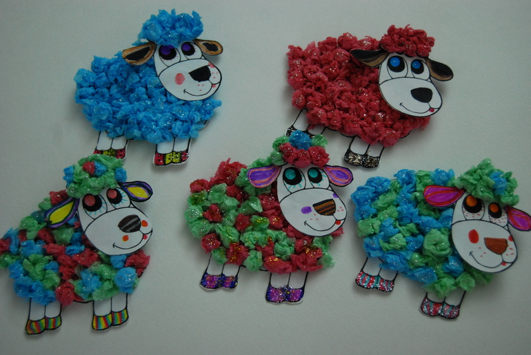 Мистер Умелец или Очумелые ручки (поделки, аппликации, интересные находки, идеи и задумки)Неделю дочка просыпалась и за работу))). Я распечатывала ей овечек,а она на своё усмотрение их оформляла). Вот что получилось.