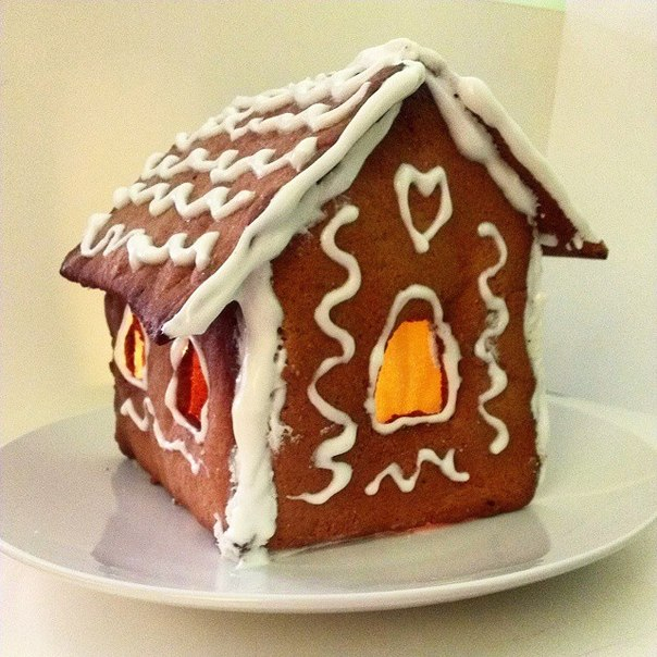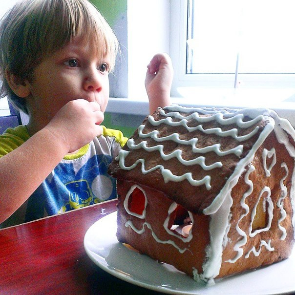 Самое сложное - склеить домик. Лучше делать в несколько этапов, чтобы он держался крепко и не разваливался. Наш корявенький, но был вкусный:)