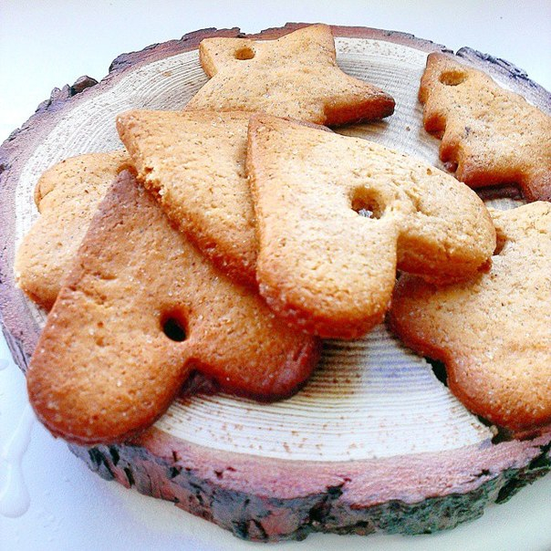 не забудьте сделать дырочки в печенье, потом их можно повесить на елку:)