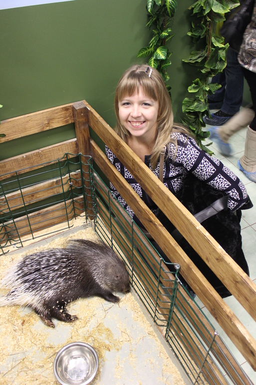 Следующим был контактный зоопарк... Там перед входом нам раздали бахиллы и мы отправились бродить по комнатам с животными....