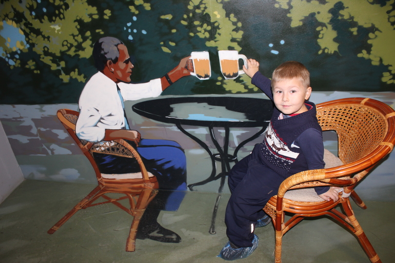 Походили, посмотрели, пофоткались... Славик на выходе еще и магнитик взял со своей фотографией... Мы его купили, красуется теперь на нашем холодильнике...