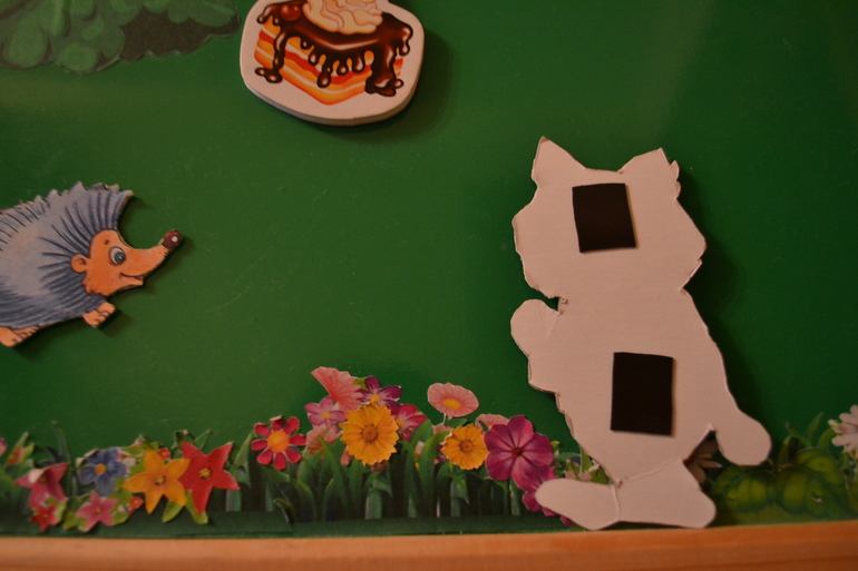 Нужные картинки распечатала, наклеила на картон и с обратной стороны кусочки магнитной ленты