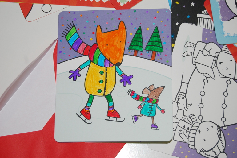 Картон плотный, рисовать удобно. Конвертики хорошо склеены. Есть открыточки без надписи С НОВЫМ ГОДОМ внутри,мы их использовали для поздравления зимних именинников:).