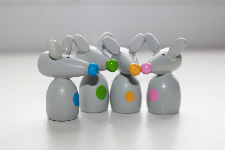 В начале игры каждый из участников получает по 8 (если играют вдвоем) или по 4 (если вчетвером) брусочка, выбирает мышку по сердцу и парный сыр к ней. Все. Приготовления закончены, можно выводить противников на исходные.