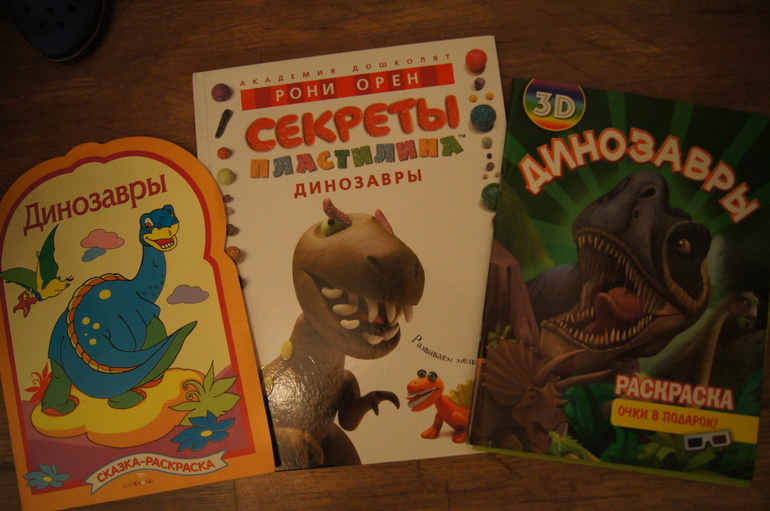 Книжка в середине, это всеми любимый Рори Орен, обычные "секреты пластилина" у нас вообще не идут, но вот с динозаврами все лепится на ура.))