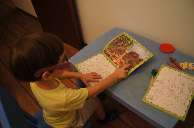 Игры и игрушки для ребят от 3 лет и старшеУ нас тут был день почти полностью посвященный динозаврам, как-то само сложилось все...Ну и конечно виноват в этом Никита, он все продолжает ими бредить, заучивает новые разновидности динозавров, играет фигурками ящеров, сам играет в них, то становится свирепым тиранозавр, то быстрым галимимимом, то еще кем-нибудь, про себя я уж молчу, тоже уже перебыла всякой этой вымершей живностью.