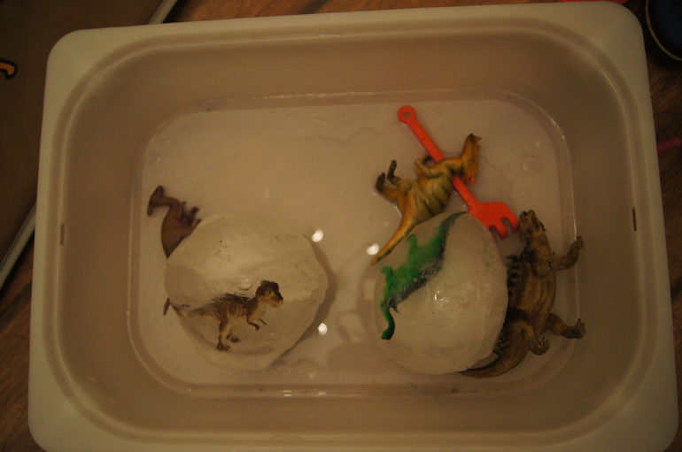 Только быстро эти яйца надоели, никак не желали таять, выламывать и растапливать сын не позволил, часов пять периодически проверяли как они там, но динозавров было не вытащить.)) Так что уснули, так и не увидев полный процесс вылупления из яйца.)))