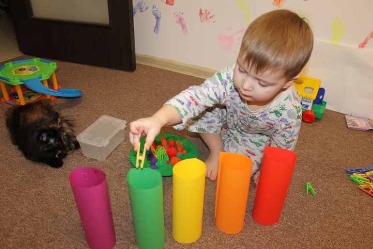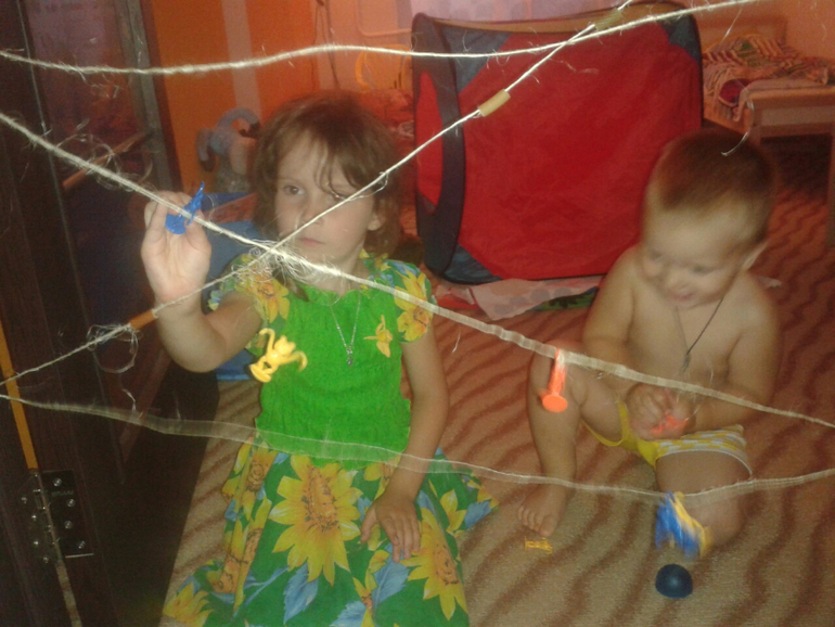 Потом поиграем в хозяюшку, предложим детям развешивать свое белье сушиться.Это довольно сложно для маленьких,для сына уже достижением было просто прищепку на веревку прицепить