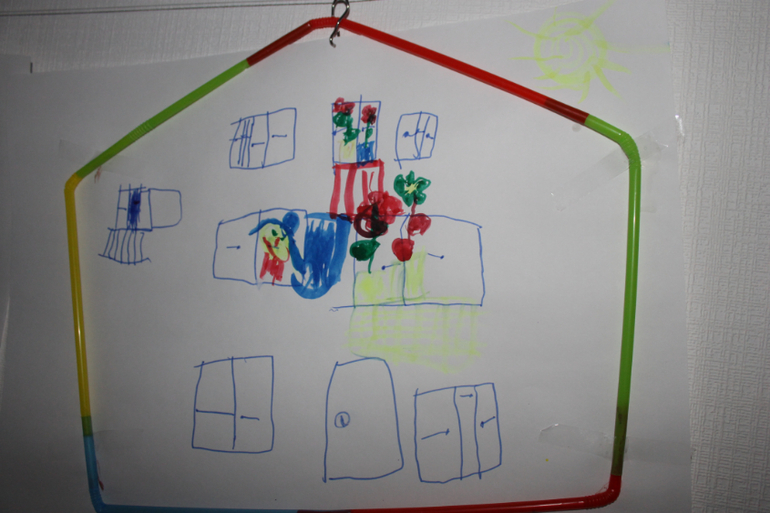 Как-то утром выходного дня дети зависли с соломинками,делая различные фигурки, соединяя их между собой. Фото,к сожалению самой работы нет, но было довольно захватывающе.Темик разрезал соломинки на маленькие кусочки и делал башню и травку вокруг,втыкая соломинки в пластилин. Александра мастерила немыслимые конструкции, а в конце придумала вот такую вот картину
