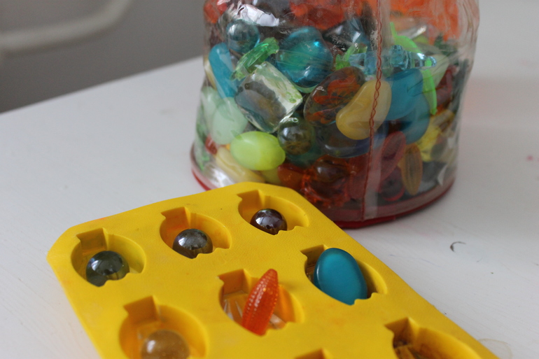 Или формочки для льда используются. Артемий у нас любит сортировать разные предметы, но это для совсем малышей,конечно. Для которых просто разложить по ячейкам уже интересно.