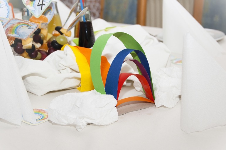 4. Пока я делала радугу для украшения на день рождения, София рядом сделала свою. Вот она. И мы её поставили украшением на стол, на месте , где сидит сама изменница.