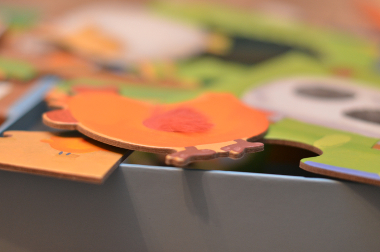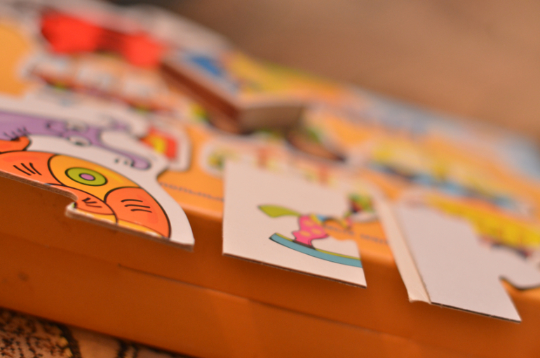 В коробке 4 пазла по 12 деталей. Хоть и не много, но собирать довольно сложно, потому что много игр красок в рисунках, легко спутать. Минус - что нет нормального большого изображения и что в разобранном виде в коробку спрятать детальки нельзя, она не закрывается. Собираются с усилием, но и ломаются весело, с хрустом. Особой любви не вызвали, мы больше по обычным картонным.