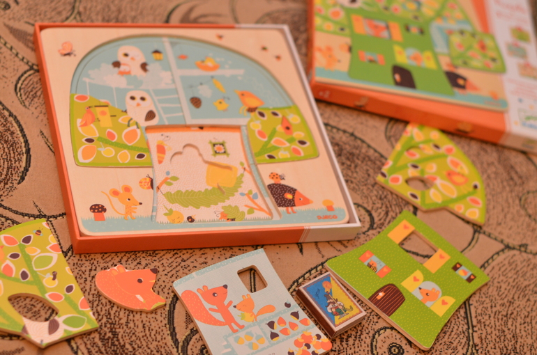 3-слойный пазл Дом в дереве. Я от него балдею:) Качество дерева, запах, коробка... А Андрюха не особо, редко когда сам достанет