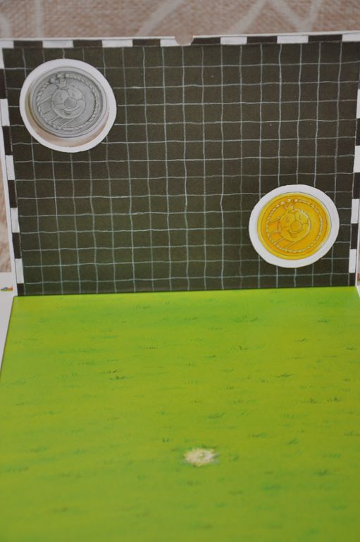 Медали надо выдавить (для последующего награждения), а в образовавшиеся отверстия попытаться попасть картонным мячом))