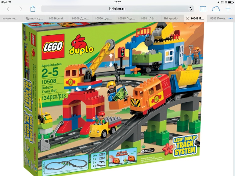 Все кубиков теперь хватит на всю жизнь, наивно думала гений Катя))) Ну и для полной красоты на распродаже за 750 р купила набор рельсов и стрелок сыну в подарок на 2 года, теперь наша жд стала больше и интересней)) я рада, муж рад, сын счастлив)) 3 месяца сын играл круглосуточно в лего, он спал с кубиками в руках, купался с человечками, ел с ними! А потом поехали мы в марте на выходные на дачу, а остались там на весну и лето))) Естественно лего на выходные с собой не повезли на дачу и так грустили без него, пострадали 2 месяца и решили купить 2 наборчика лего, ну ведь можно же, да?)