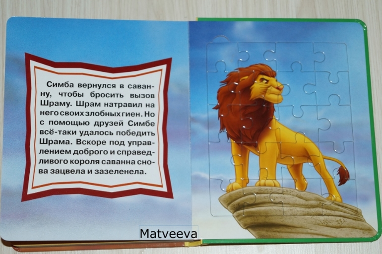 Ну и последняя наша книга-пазл)) нам ее подарила Крестная))книга чудесная)) замечательные иллюстрации из любимого мультика, и сами страницы и пазлы из плотного ламинированного картона, собираются легко, не рассыпаются, собранное изображение можно даже поднять))