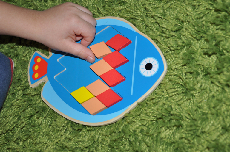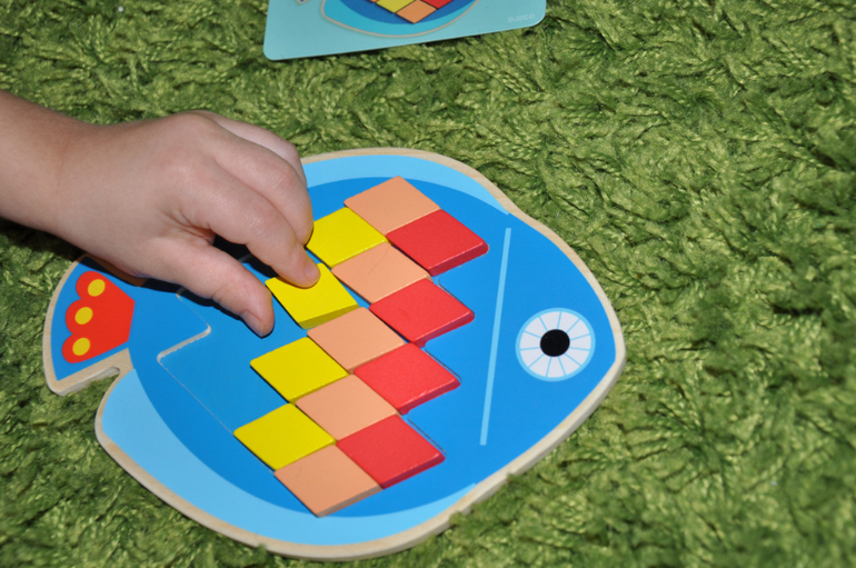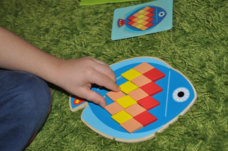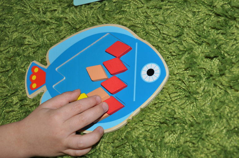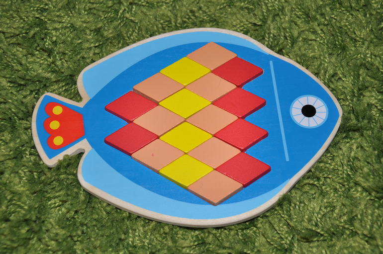 Очень похожая на Геоформ от Hape мозаика. Но она, на мой взгляд, может заинтересовать ребенка с большей вероятностью - ведь для детей лет до 5 выкладывать причудливый узор рыбьей чешуи гораздо интереснее!