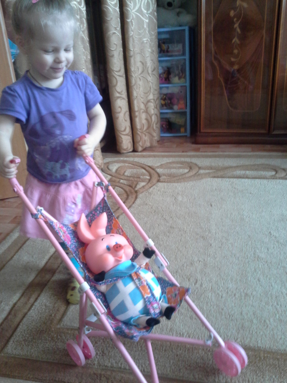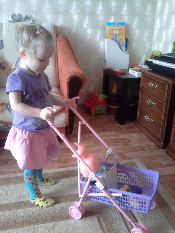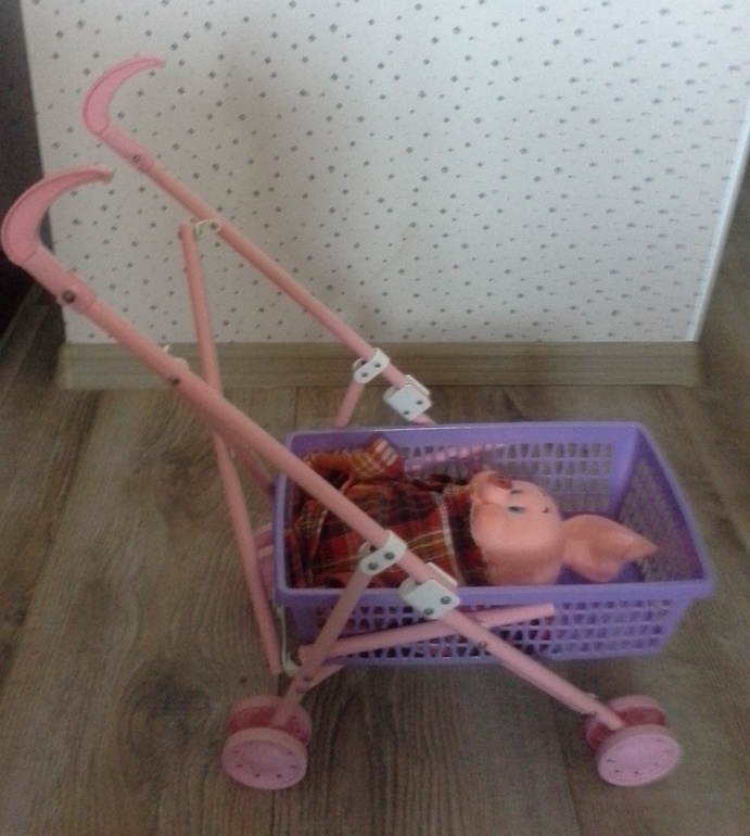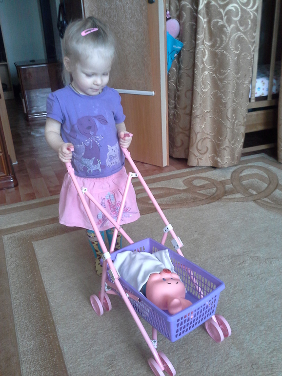 Ведь новая игрушка-то теперь больше похожа не на коляску, а на продуктовую тележку