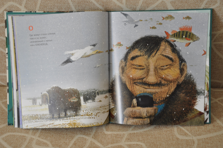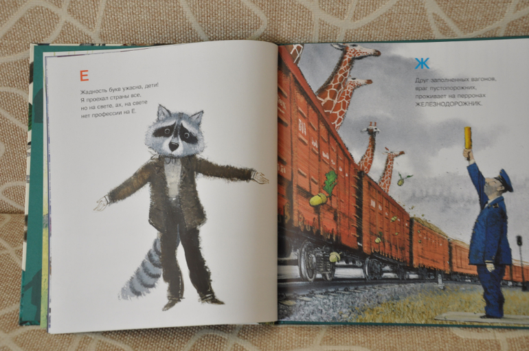 Кроме того, в этой книге есть игра: на каждой странице или развороте, посвященным букве, надо найти как можно больше спрятанных слов, начинающихся на эту букву.