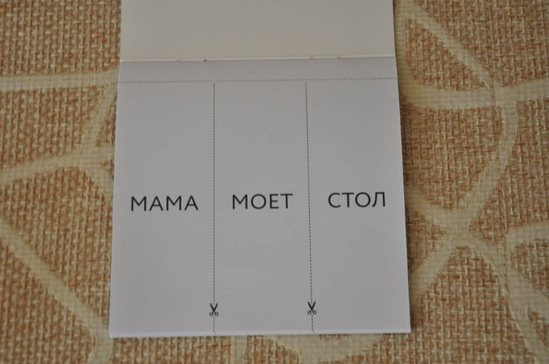 Помимо книжек для чтения есть книжка-игра: тут надо разрезать листы по линиям и играть в составления предложений - занятие полезное и веселое, я уверена (хотя мы пока не пробовали)):