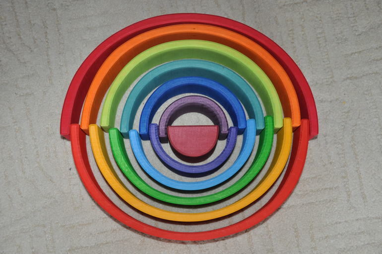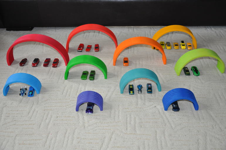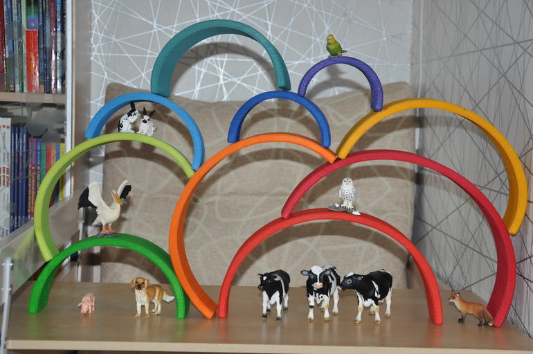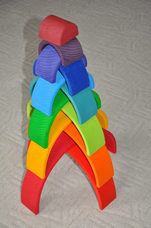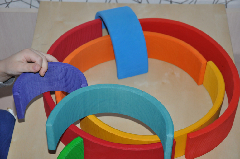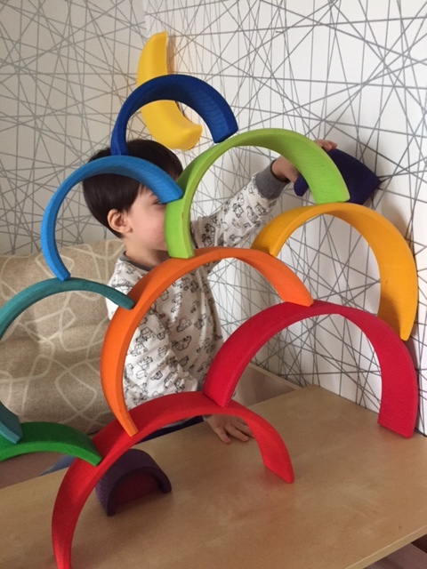 В связи с тем, что последние пару дней Артур болеет (ох уж этот детский сад...), одной из основных моих задач стало удержание его в постели, и радуга мне очень в этом помогла. Вот какие дома мы строим: