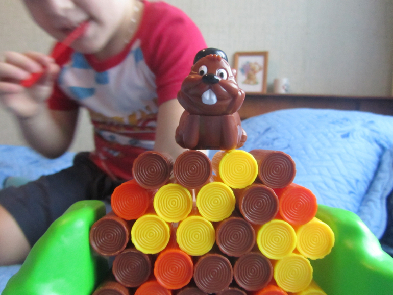 "Веселый бобер" тоже очень понравился! Сам бобер уже с батарейками, недовольно кричит, если его потревожить!