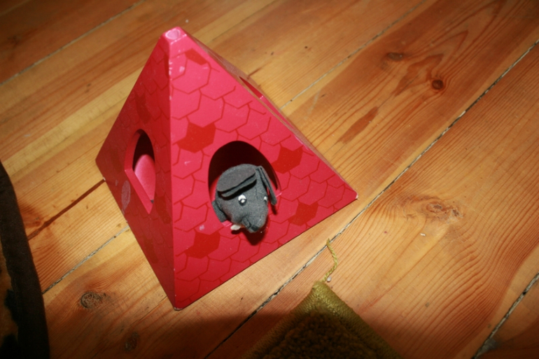 Бежала по полю Мышка-норушка, теремок этот увидала. Залезла в него, значит. И решила в нем жить остаться.